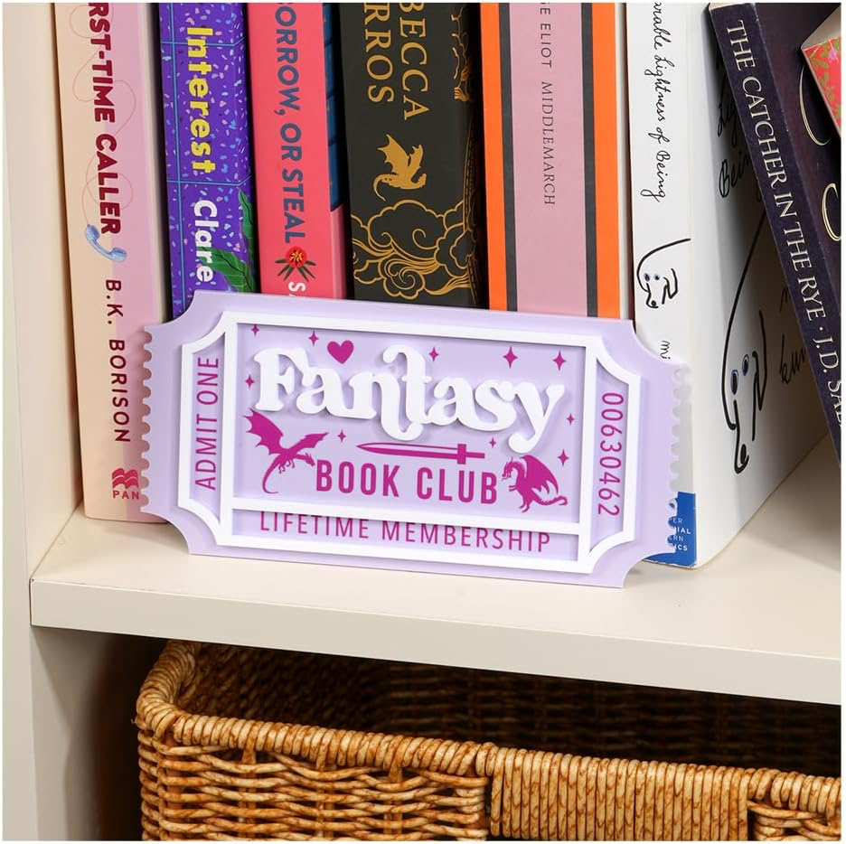 Fantasy Book Club Library Sign – Adds personality and charm to any cozy reading space.